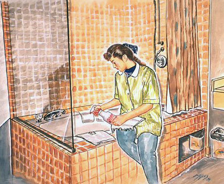 Owens Corning a large manufacturer of fiberglass fixtures has found one of Kleenco's products to be especially effective in removing these soils without damaging the fixture. Meet Kleenco's Shower-Kleen. A fantastically effective product for cleaning fiberglass tubs, showers and glass surrounds. Soap scum on tile? Shower-Kleen is quite effective on this material.