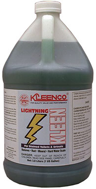 Toilets create a special cleaning challenge especially in areas with a high mineral content in the water. Such as those communities reliant on well water. When water containing magnesium stays in contact with a surface for long periods of time a difficult to clean black ring will form on that surface. For these soils and surfaces Kleenco has formulated Lightning-Kleen.