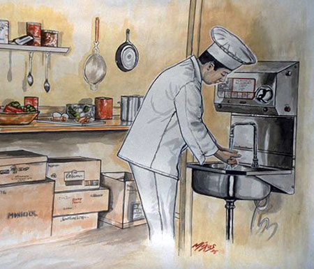 "The timing of hand washing is key. It’s obvious to wash hands after using the toilet, after sneezing or before eating or handling food. Other crucial times for hand washing are after changing a diaper or cleaning up after a pet, or after touching garbage cans, cleaning cloths, cutting boards, dish rags and utensils that may have come into contact with raw food.